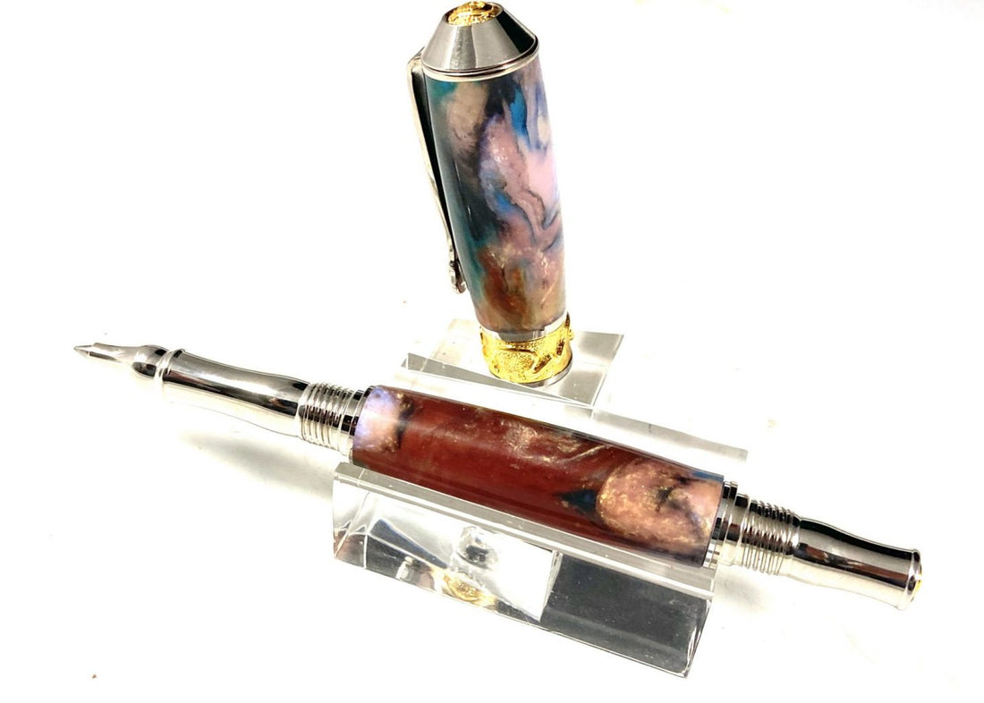 JR. GENTLEMAN’S ROLLER BALL PEN- BUCKEYE BURL AND BLUE PEARL RESIN